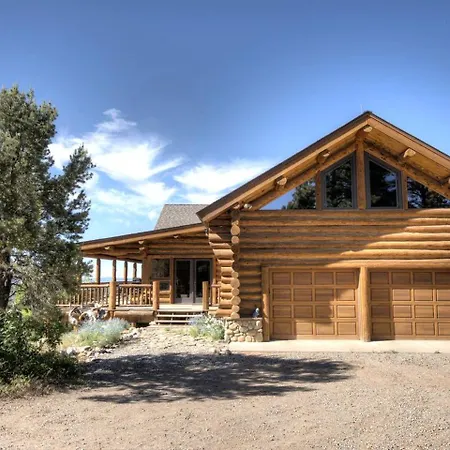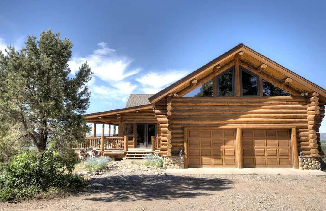 Situated nearly a 10-minute ride from the Palmer Quarter Horses, Spacious Log Cabin Rental Perfect For Large Groups In Durango, Colorado Falfa invites guests to relax at a patio.
